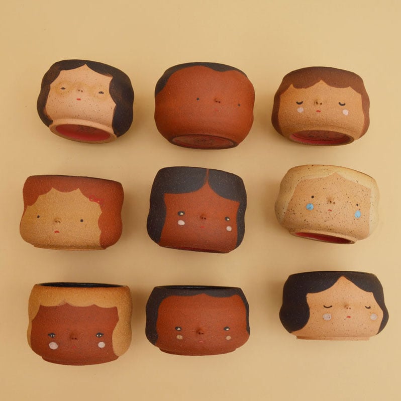 (2) All of these small cups are unique and one of a kind. You will have the option to choose the clay color but not the facial features/expression or hair style. If you don't mind this and are willing to be surprised, proceed! If you prefer to know exactly what it will look like before you buy, please wait until the next shop update (date tbd).